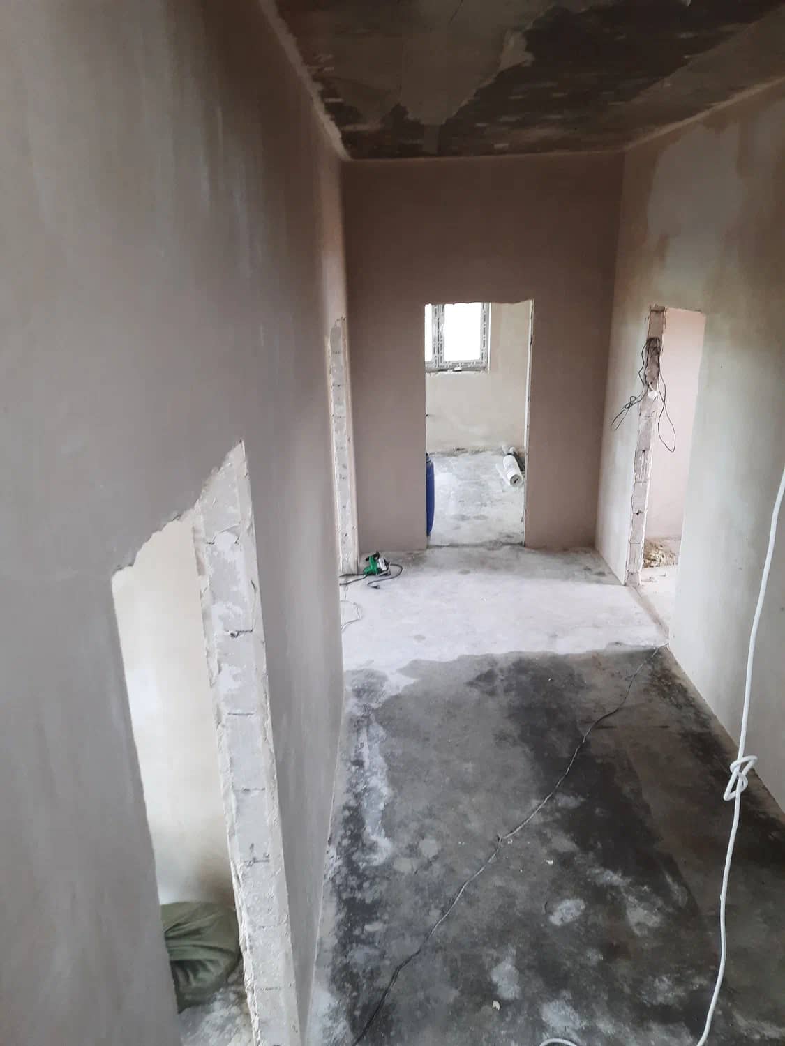Шпаклевка стен после штукатурных работ в доме 320 м²