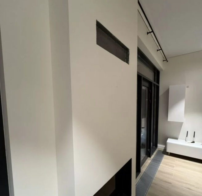 Для этого объекта мы использовали шпаклевку KNAUF «Ротбанд Паста Профи» (виниловая финишная). Благодаря гипсовой основе, Knauf быстрее застывает и имеет лучшее сцепление, по сравнению с известковыми и цементными смесями. Сдали проект за 3 дня, прошли технический надзор: идеально ровное покрытие, углы 90 градусов.